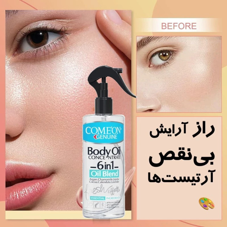 💖 6. ثابتکننده طبیعی 🔒: پس از تکمیل آرایش، 1 پمپ روغن را روی کف دست ریخته، دستها را به آرامی به هم بفشارید و با ضربههای ملایم (تپ تپ) روی صورت بزنید. این حرکت، پودرها را تثبیت کرده و جلوه شبنمگونه به پوست میدهد.