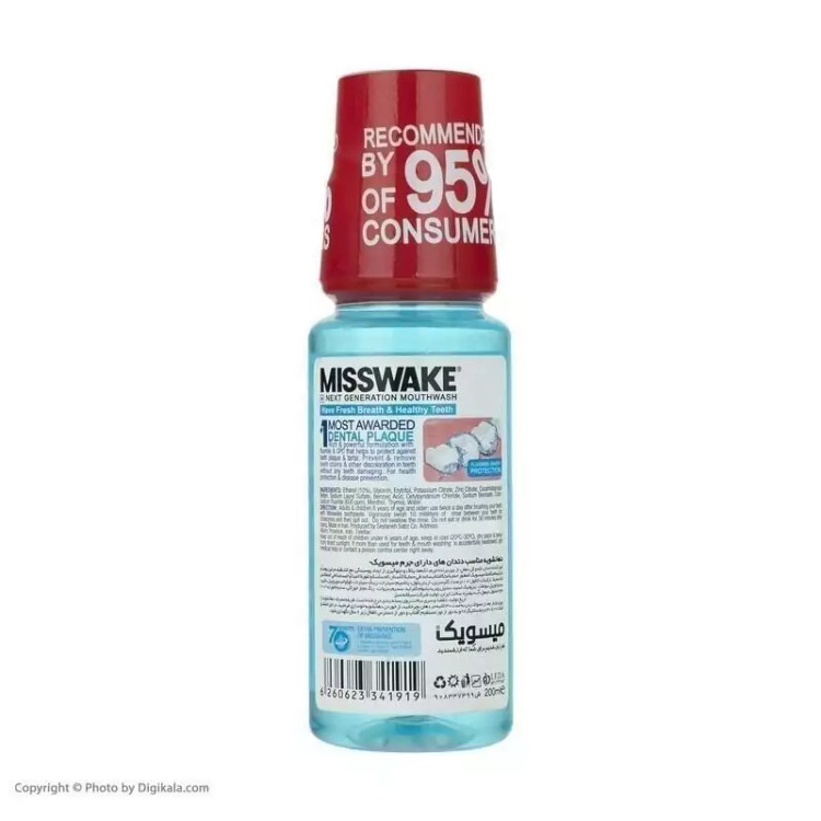 دلیل اصلی ایجاد دندان درد و خرابی ماندگاری مواد غذایی در میان دندان ها بوده و عدم دسترسی بین آنها به تولید جرم و در نهایت خرابی آن منجر میشود. برای جلوگیری از رشد باکتری های مولد بو و جرم بهتر است از یک ضدعفونی کننده مناسب استفاده کنیم. دهانشویه میسویک Misswake مدل آنتی پلاک ضد عفونی کننده با اثر پذیری بسیار در تمام فواصل میان دندان عبور کرده و آلودگی را پاک میکند. همچنین با دارا بودن خاصیت آنتیپلاک و حفظ رطوبت و تازگی از ایجاد بیماری های دهان و دندان جلوگیری میکند. دهانشویه آنتیپلاک میسویک Misswake بدون ایجاد سوزش در دهان، طعم خوشایندی در دهان را ایجاد میکند. خرید دهانشویه میسویک Misswake بهترین انتخاب برای داشتن دندان هایی سالم بدون هر گونه تغییر رنگ است. این محصول با دارا بودن فرمولاسیونی قوی باکتری های دهان را از بین برده و از ایجاد جرم جلوگیری میکند. ---------- ویژگی های دهانشویه آنتی پلاک میسویک Misswake - ضد پلاک - ضد حساسیت - سفید کننده - ضد عفونی کننده - افزایش رطوبت و تازگی دهان - فرمولاسیونی قوی جهت از بین بردن باکتری ها و جرم دندان - قدرت تمیز کنندگی بالا - حجم 200 میل