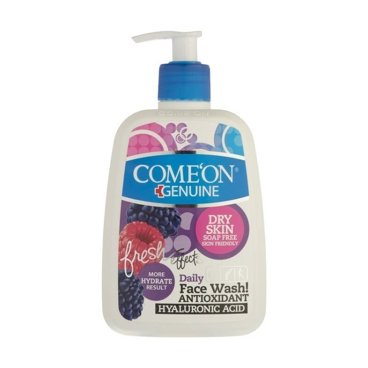 ژل شستشوی صورت مخصوص پوست خشک کامان Come`On - افزایش رطوبت رسانی و آبرسانی پوست - 500 میل - هیالورونیک اسید - فیس واش