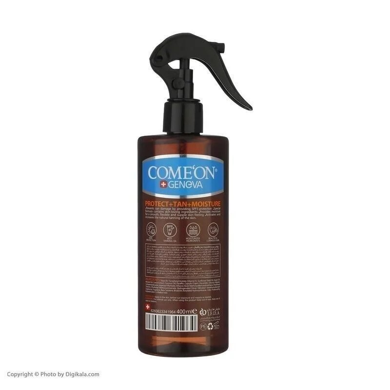 روغن برنزه کننده بدن کامان Come`On - ،تغییر رنگ پوست با ایجاد رنگ برنز طلایی ،محافظت در برابر اشعه های آفتاب،رطوبت رسان و تغذیه کننده پوست ،ضد التهاب و ترمیمم کننده پوست ،مناسب انواع پوست جهت آفتاب گرفتن و سولاریم می باشد .