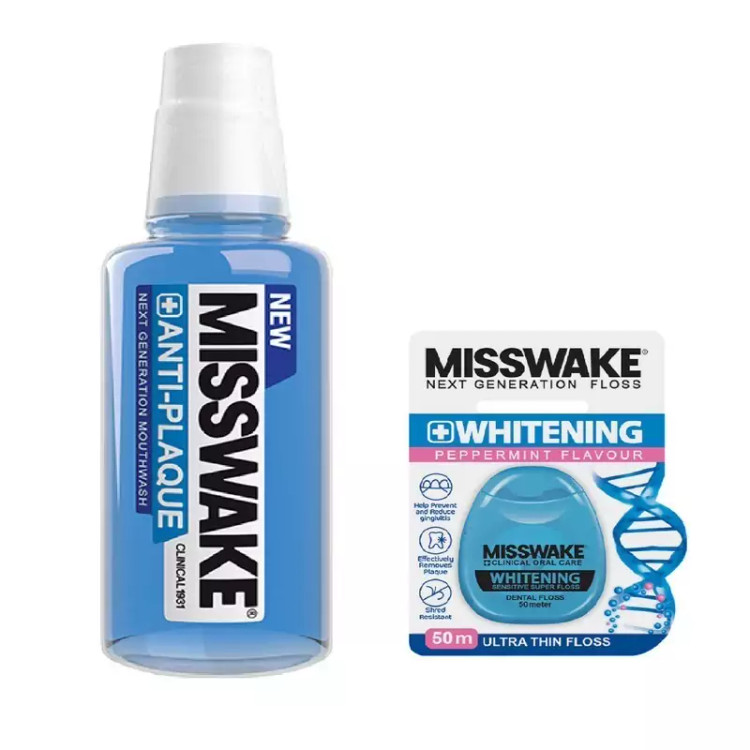 دهان شویه میسویک Anti Plaque ضد پلاک بوده و با از بین بردن پلاک و جرم روی دندان ها، به سلامت آن ها کمک می کند. این محصول با طعم نعنا، دهان را خوشبو و خنک کرده و ضد حساسیت، سفید کننده و با قدرت تمیز کنندگی بالا، دندان ها را تمیز و سفید می کند. یکی از کارهای اساسی برای محافظت از دندان ها استفاده از نخ دندان است، توصیه می شود حداقل روزی یک بار نخ دندان بکشید. با این کار پلاک های میکروبی از بین دندان ها که مسواک به آن ها نمی رسد، از بین خواهند رفت که این مساله نقش مهمی در جلوگیری از پوسیدگی دندان ها و حفظ سلامتی لثه ها ایفا می کند، همچنین با پاک کردن کامل دندان ها از تکه های غذا و باکتری ها، باعث می شود دهان شما بد بو و بد طعم نشود. نخ دندان میسویک Whitening سفید کننده، فوق العاده نازک و دارای پوشش موم عسل است. استفاده از این محصول پلاک دندان ها را از بین می برد.