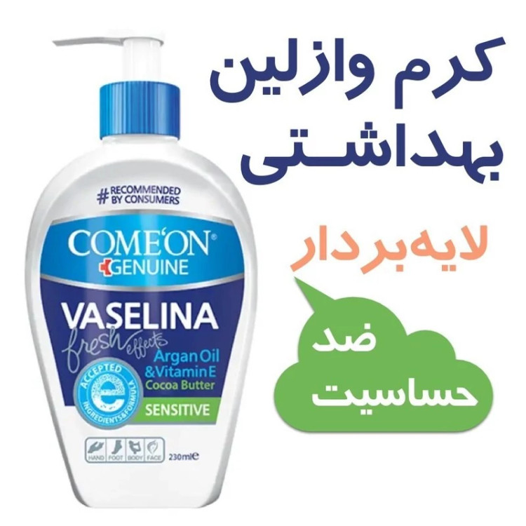 کرم وازلین کامان Come`On مخصوص پوست حساس - حجم 200 میل - لایه بردار پوست - مناسب درمان ترک پا و پوست خشک - استفاده روزان