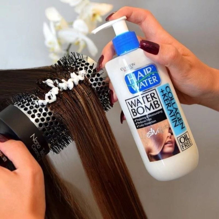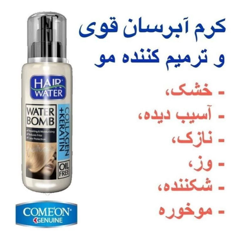 کرم آبرسان مو هیر واتر 100 میل مدل کلاژن و کراتین کامان برای ترمیم موی خشک و شکننده مناسب صاف کردن مو و سشوار کشیدن