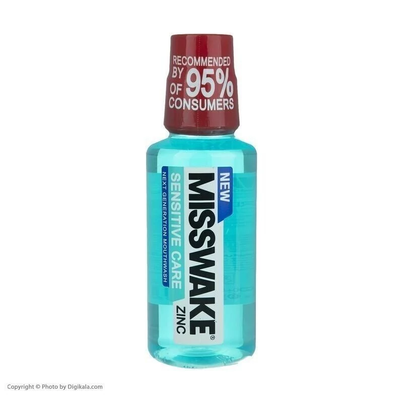 دهانشویه Misswake میسویک مدل Sensitive Care حجم 400 میل مجرای تنفسی را خوشبو می سازد و از پوسیدگی و التهاب جلوگ