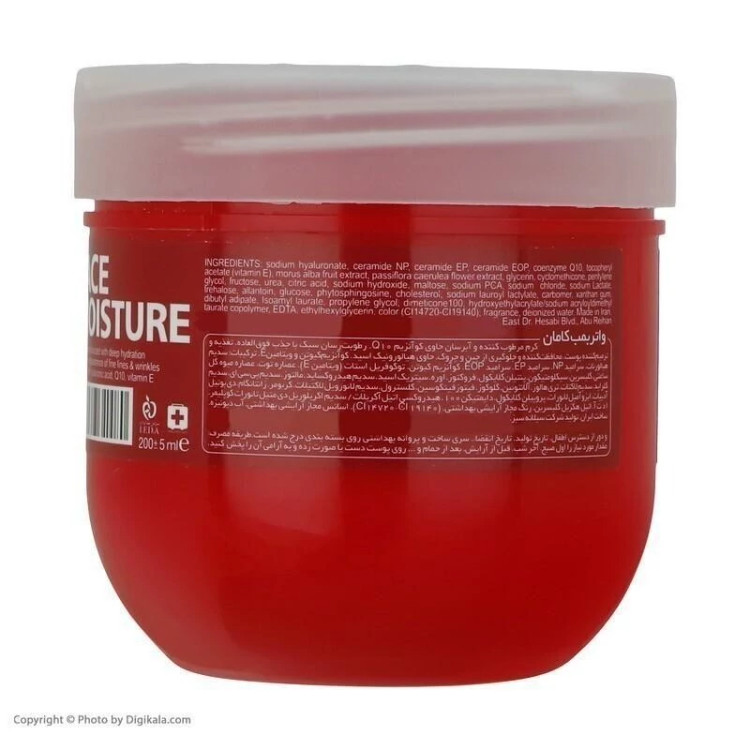 کرم آبرسان پوست کامان سری واتر بمب Q10 E حجم 200 میل برای کنترل چربی پوست ظرف قرمز