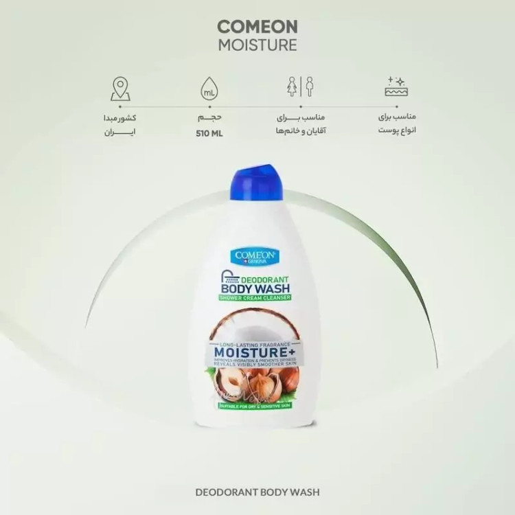 شامپو بدن کرمی رطوبت رسان فندق کامان درمان خشکی پوست - 500 میل - حاوی زینک، ویتامین E، پنتنول، روغن بادام و نا