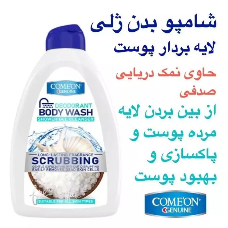 شامپو بدن نمک دریا کامان Come`On - مناسب انواع پوست ها می باشد، این شامپو دارای خاصیت پاک کنندگی بسیار قوی است و پوست را از هر گونه باکتری، چربی و آلودگی های روزمره پاک می کند. علاوه بر این شامپو بدن ScrubBing کامان Come`On - حاوی نمک دریا بوده که خاصیت لایه برداری و اسکراب را به این شامپو میدهد و با برداشتن لایه های مرده روی پوست و تمیز کردن لایه های پوست باعث تقویت سیستم گردش خون پیرامون پوست و شادابی پوست می گردد و به بهبود و نوسازی پوست کمک می کند. شامپو بدن نمک دریا کامان Come`On - از خشکی پوست جلوگیری کرده و موجب افزایش رطوبت پوست و پاکسازی پوست از سموم میگردد. همچنین باعث کاهش پوسته پوسته شدن و التهابات پوستی می گردد. این شامپو با داشتن نمک دریا در ترکیباتش، ضد تعریق بوده و خوشبو کننده پوست نیز می باشد. شامپو بدن لایه بردار کامان Come`On - بواسطه داشتن نمک دریا در ترکیبات خود در از بین بردن لک و آکنه روی پوست بسیار تاثیر گذار است. این شامپو حاوی ویتامین E می باشد که خاصیت آنتی اکسیدانی ویتامین E باعث جوان سازی سلول های پوست می گردد.