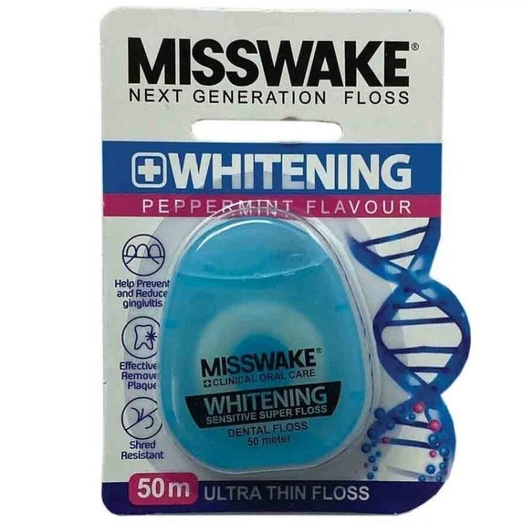 به دلیل عدم دسترسی به میان دندان ها به راحتی مورد استفاده بوده است و پلاک و جرم های بین دندانی را حذف کرده و پوسیدگی دندان را کاهش میدهد. همچنین مناسب دندان های ارتودنسی شده است. این نخ دندان موجب ایجاد تورم و التهاب در لثه نمیشود همچنین این نخ دندان ضدحساسیت است. نخ دندان سفید کننده در برابر ساییدگی و ریش شدن مقاومت بالایی دارد و پاره نمیشود. --------------- ویژگی نخ دندان سفید کننده - Misswake میسویک - دارای طعم خوشایند نعنا با ضخامت فوق العاده نازک - درخشان کننده - سفید کننده - مقاومت بالا در برابر سایش - پاک کردن مواد غذایی در نقاط دور از دسترس - حاوی موم طبیعی عسل