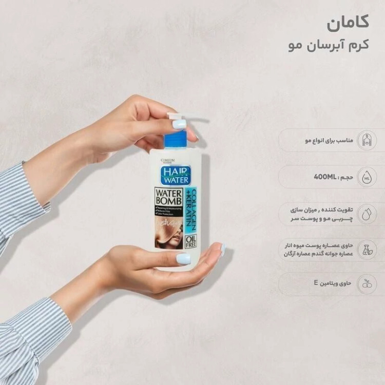 کرم آبرسان مو کامان ComeOn Collagen Hair Water حجم 400 میل ترمیم کننده موهای خشک آسیب دیده نازک وز شکننده