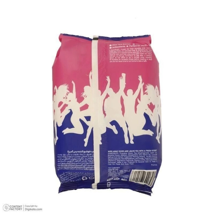 ویژگیهای دستمال مرطوب بدن آمبرلا Umbrella - مدل Total: • مناسب استفاده روزانه (محل کار، میهمانی و…) • حاوی رایحه تمیز و ملایم • آنتیمیکروبیال • ضدحساسیت و بدون مواد مضر • تنظیمکننده رطوبت سطح پوست • حاوی ویتامین E • از تیرگی پوست زیر بغل و ایجاد قارچ پوستی جلوگیری میکند • سریع و به سادگی قابل استفاده است • 100% پنبهای • هر بسته حاوی 50 برگ دستمال مرطوب ---------- ترکیبات: • پروپیلین گلایکول • روغن کرچک هیدروژنه • بوتیلن گلایکول • آلانتویین • دکسپانتنول (پرو ویتامین B5) • عصاره میوه خیار • پودر برگ آلوئه ورا • اسانس مجاز آرایشی و بهداشتی • فنوکسی اتانول • میریستیل الکل • گلیسیریل استئارات • توکوفریل استات (ویتامین E) • دی سدیم اد ت آ • آب دیونیزه • منسوج نبافته • هر بسته حاوی 50 عدد -------- دستمال مرطوب بدن آمبرلا Umbrella - با رایحههای ماندگار و خاص گزینهای ایدهآل برای زمانهاییست که به هر دلیلی نمیتوانید دوش بگیرید؛ اما دوست دارید بوی عرق را از بین ببرید و حس شادابی و طراوت را به بدن برگردانید. استفاده از شاوروایپ آمبرلا Umbrella - بسیار ساده و در هر مکانی امکانپذیر است. شاور وایپ یا همان دستمال مرطوب بدن آمبرلا Umbrella - با خاصیت آنتیمیکروبیال، میزان رطوبت بدن را تنظیم و از بروز بیماریهای پوستی مانند قارچ جلوگیری میکند. فرمولاسیون دستمالهای مرطوب بدن آمبرلا Umbrella - ترکیبیست مدرن از روغن کرچک هیدروژنه، عصاره خیار، پودر برگه آلوئهورا، ویتامین E و منیزیم هیدروکساید. از آنجایی که در دستمالهای مرطوب بدن آمبرلا Umbrella - از آلومینیوم کلراید استفاده نشدهاست؛ محصولاتی بدون ریسک و سلامت هستند.