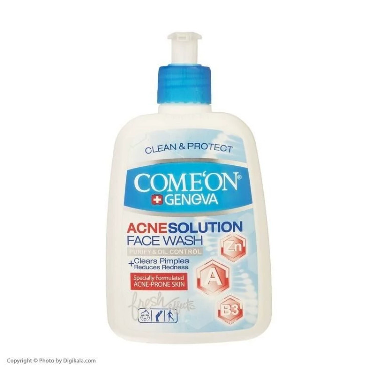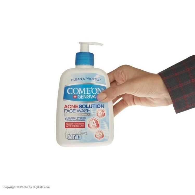 ژل شستشوی صورت مخصوص پوست دارای جوش و چرب کامان ComeOn - مدل Acne Solution حجم 500 میل - آبرسان پوست کد 403