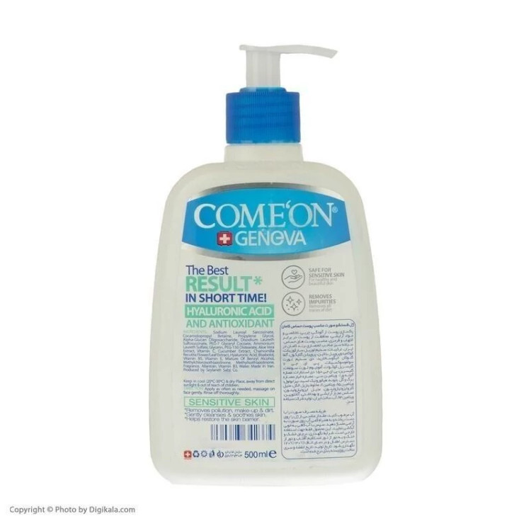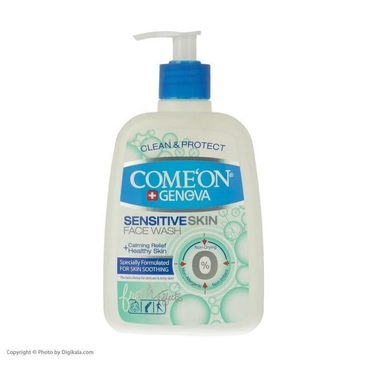 ژل شستشوی پمپی صورت - مخصوص پوست حساس کامان - حجم 500 میل - درمان آفتاب سوختگی و کک و مک و پف زیر چشم