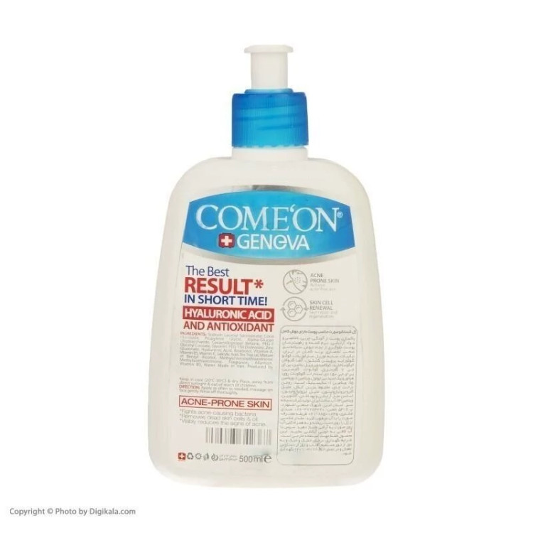 ژل شستشوی صورت مخصوص پوست دارای جوش و چرب کامان Come`On مدل Acne Solution حجم 500 میل آبرسان پوست