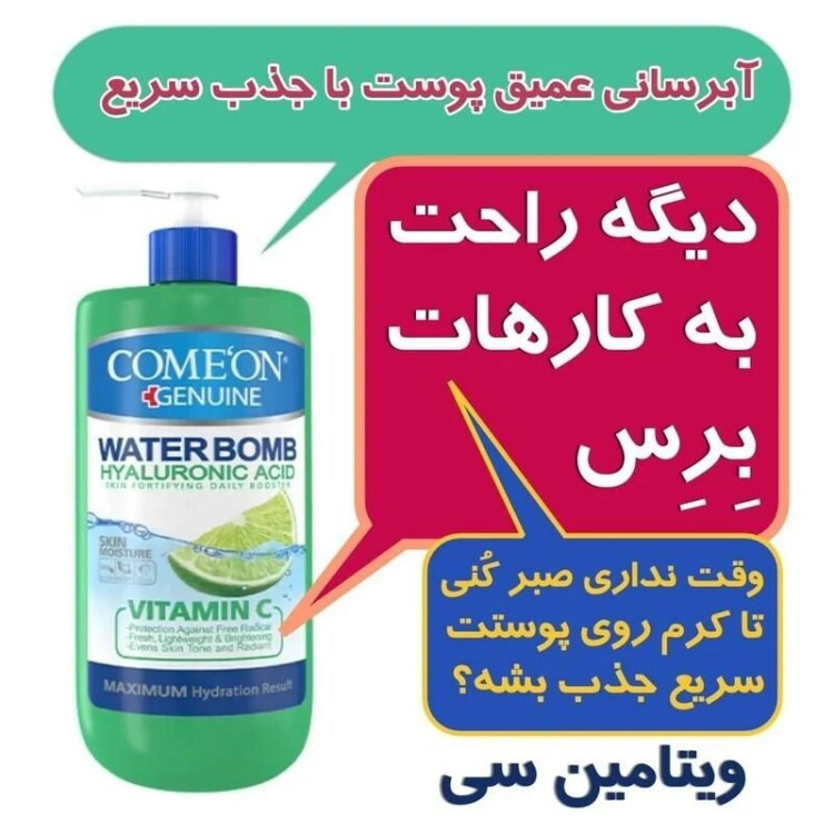 کرم سوپرآبرسان واتر بمب کامان ویتامین سی C با هیالورونیک اسید - جوانساز و شاداب کننده 500 میل