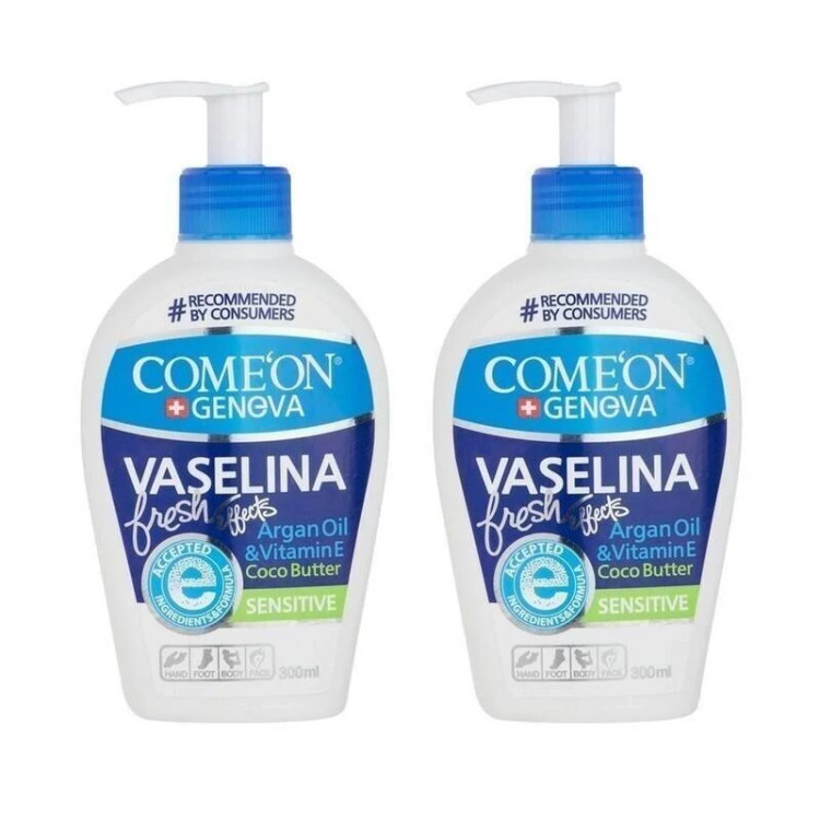 کرم وازلین بهداشتی پمپی کامان Come`On حاوی روغن آرگان و ویتامین ای 200میل مجموعه 2عددی لایه بردار پوست و درمان تر