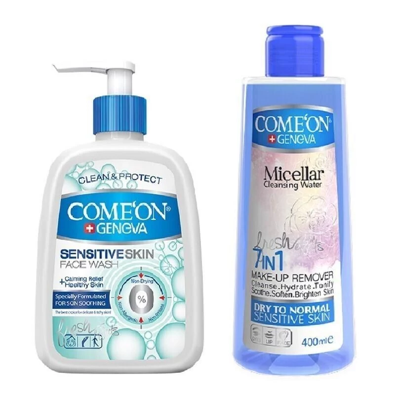پک دوعددی که شامل ژل شستشوی صورت مخصوص پوستهای خشک و حساس کامان Come`On - که یکی از ویژگی های بی نظیر آن این است که این شوینده پاک کننده منافذ پوست، جلوگیری از تکثیر باکتری های مولد جوش های صورت را دارا است که به پر طرفدار شدن این محصول نیز کمک شایانی کرده است. به علاوه در کنار ملایم سازی و متعادل سازی چربی پوست به جهت جلوگیری از زدن جوش این ژل دارای سالیسیلیک اسید با اثر ضد جوش های سر سیاه و سر سفید صورت بویژه ناحیه است که در زیبایی و روش سازی پوست نیز بسیار موثر است. همچنین شایان ذکر است که از آن در تمامی نواحی صورت اعم از پیشانی و بینی می توان استفاده کرد و پوستی جوان و شاداب را برای خود به ارمغان آورید. به همراه محلول پاککننده آرایش یا همان میسلارواتر کامان Come`On - مخصوص پوستهای خشک تا نرمال و حساس ضمن پاکسازی عمیق پوست از آرایش و آلودگی بدون ایجاد سایش، کشیدگی، التهاب و قرمزی پوست صورت،آبرسانی قوی نیز هست.