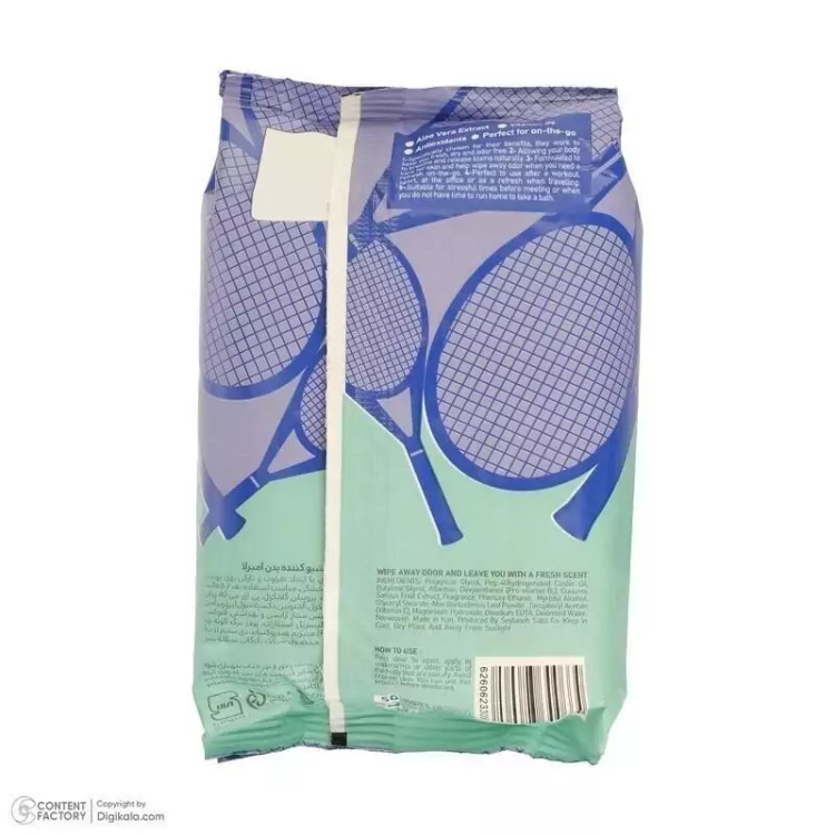 ویژگیهای دستمال مرطوب بدن آمبرلا Umbrella - مدل - Sport: • مناسب استفاده پس از فعالیتهای ورزشی و بدنی • حاوی رایحه خنک و ماندگار • آنتیباکتریال • ضدحساسیت و بدون مواد مضر • تنظیمکننده رطوبت سطح پوست • حاوی ویتامین E • از تیرگی پوست زیر بغل و ایجاد قارچ پوستی جلوگیری میکند • سریع و به سادگی قابل استفاده است • 100% پنبهای • هر بسته حاوی 50 برگ دستمال مرطوب --------------- دستمال مرطوب بدن آمبرلا Umbrella - (Shower wipe): دستمال مرطوب بدن آمبرلا Umbrella - با رایحههای ماندگار و خاص گزینهای ایدهآل برای زمانهاییست که به هر دلیلی نمیتوانید دوش بگیرید؛ اما دوست دارید بوی عرق را از بین ببرید و حس شادابی و طراوت را به بدن برگردانید. استفاده از شاوروایپ آمبرلا Umbrella - بسیار ساده و در هر مکانی امکانپذیر است. شاور وایپ یا همان دستمال مرطوب بدن آمبرلا Umbrella - با خاصیت آنتیمیکروبیال، میزان رطوبت بدن را تنظیم و از بروز بیماریهای پوستی مانند قارچ جلوگیری میکند. فرمولاسیون دستمالهای مرطوب بدن آمبرلا Umbrella - ترکیبیست مدرن از روغن کرچک هیدروژنه، عصاره خیار، پودر برگه آلوئهورا، ویتامین E و منیزیم هیدروکساید. از آنجایی که در دستمالهای مرطوب بدن آمبرلا Umbrella - از آلومینیوم کلراید استفاده نشدهاست؛ محصولاتی بدون ریسک و سلامت هستند.
