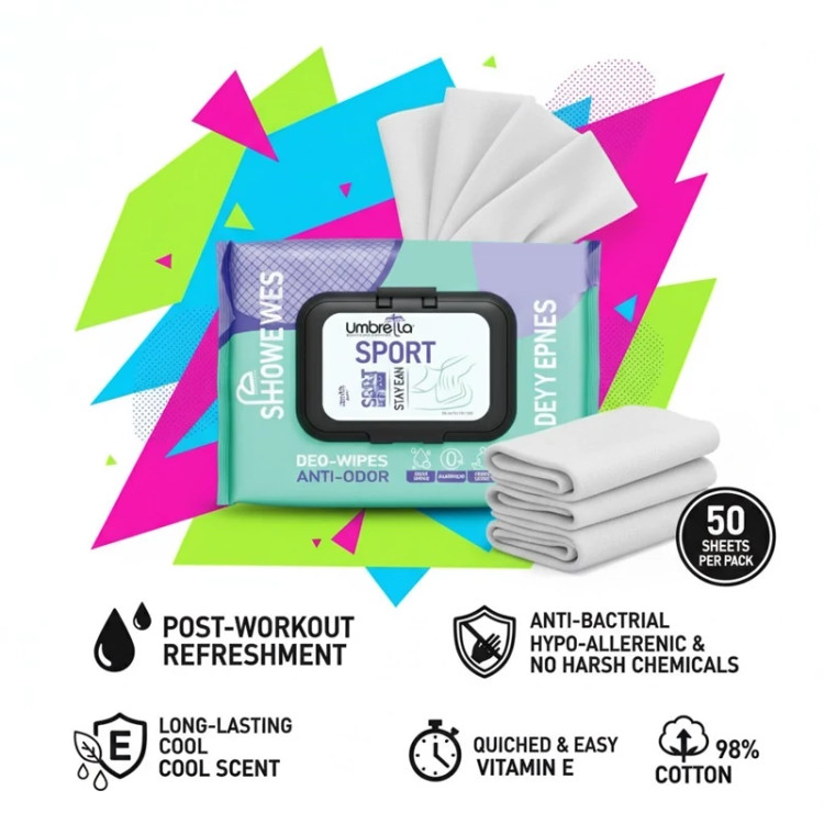 دستمال مرطوب آمبرلا ورزشکار - مدل Sport بسته 50 عددی حاوی عصاره خیار و آلوئه ورا رایحه خنک