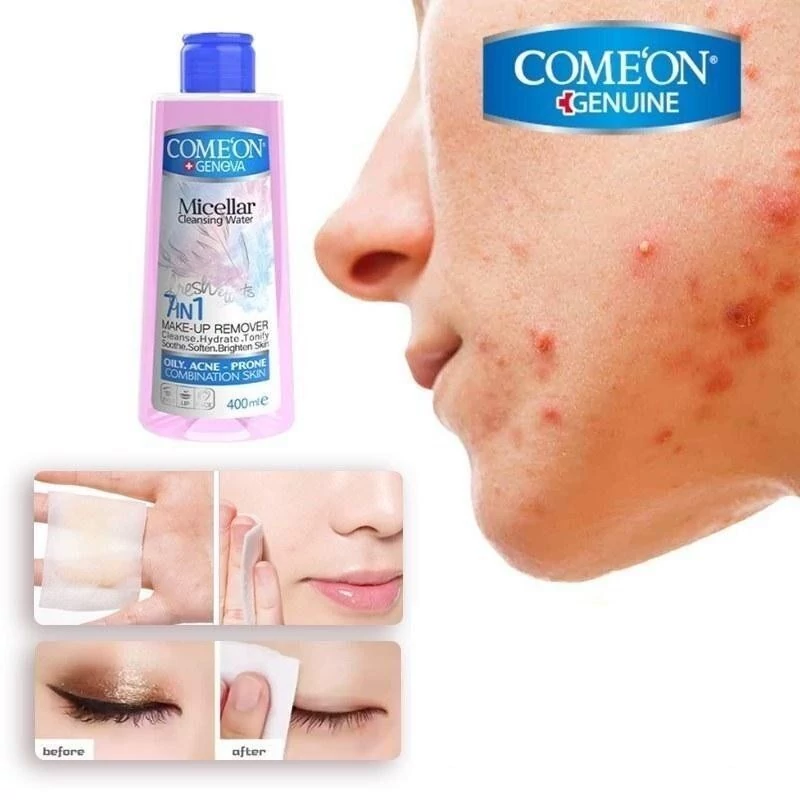 محلول آرایش پاک کن صورت کامان میسلار واتر Micellar مناسب پوست چرب و جوش دار و حساس حجم 400 میل