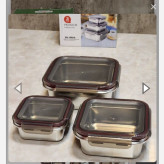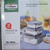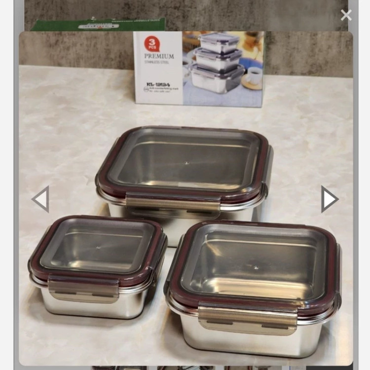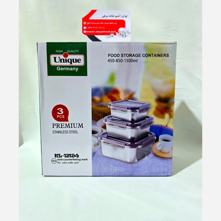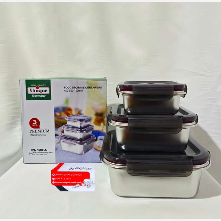 ظرف غذای استیل سه تیکه درب پلاستیکی واشردار برند یونیک استیل خالص اهنربا نگیر ضدزنگ و سیاه شدن بدون ریختن مایعات