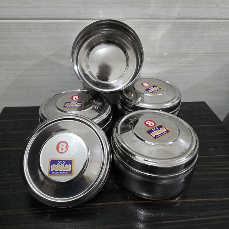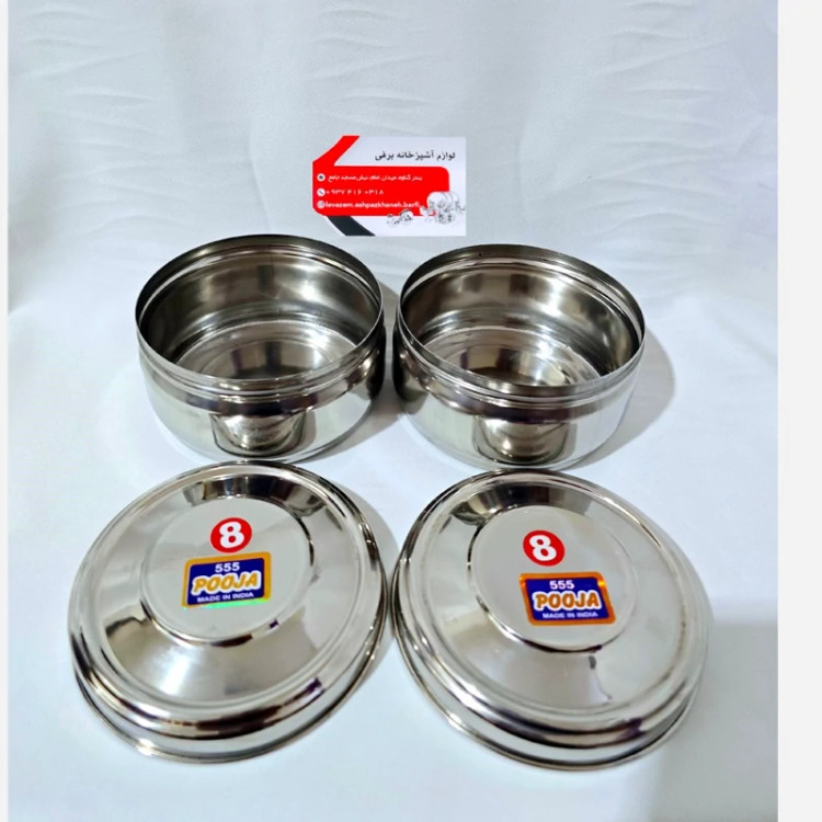 ظرف درب دار سایز 8 استیل خالص اهنربا نگیر برند 555ضد زنگ و سیاه شدن
