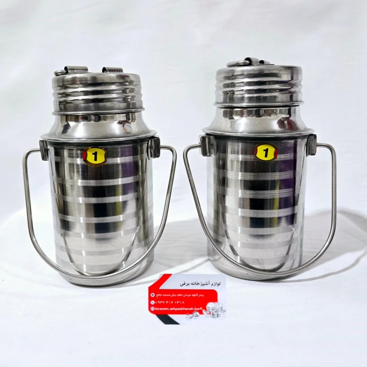 ظرف روغن(دبه) ،شیر ،ماست 1 لیتری برند 555 استیل خالص اهنربا نگیر ضد زنگ و سیاه شدن
