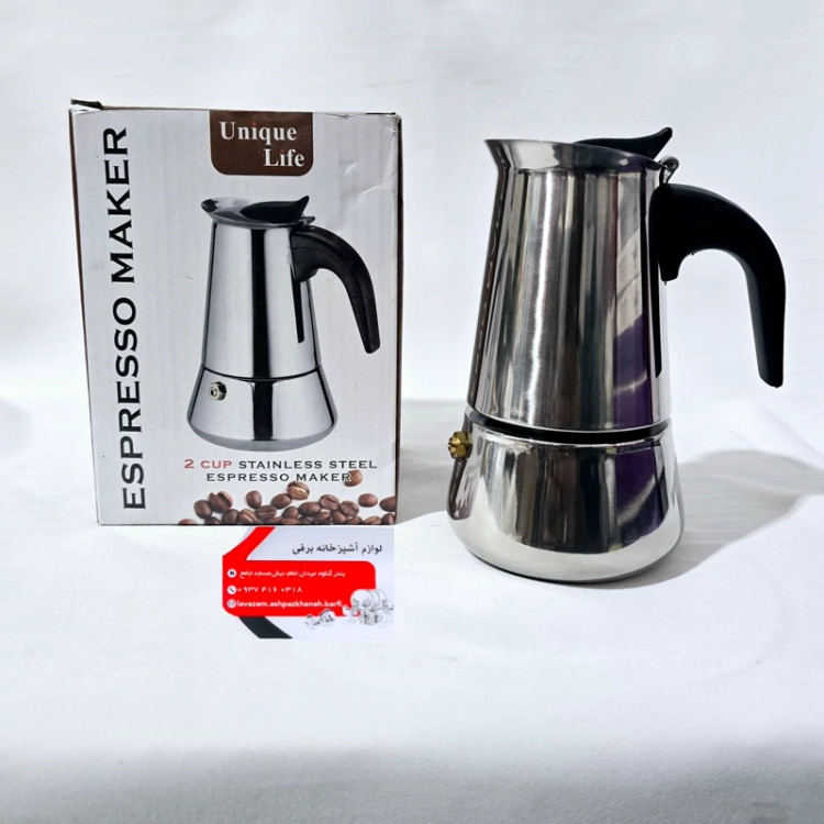 قهوه جوش استیل دو کاپ (دونفره ) موکاپات -اسپرسو ساز استیل برند یونیک