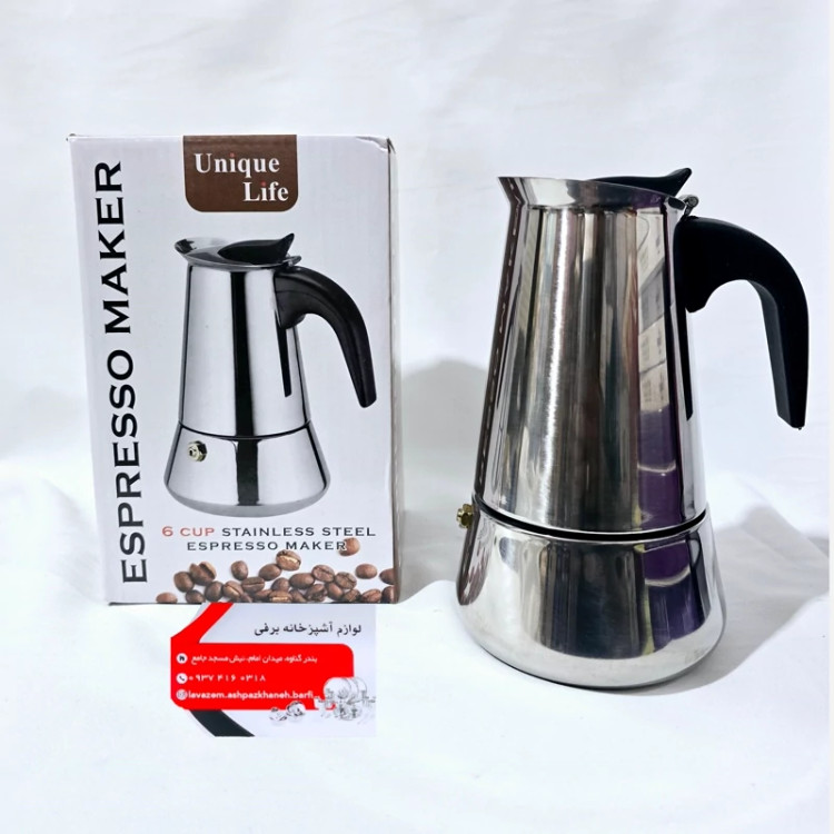 قهوه جوش استیل شش کاپ (شش نفره ) موکاپات -اسپرسو ساز استیل برند یونیک