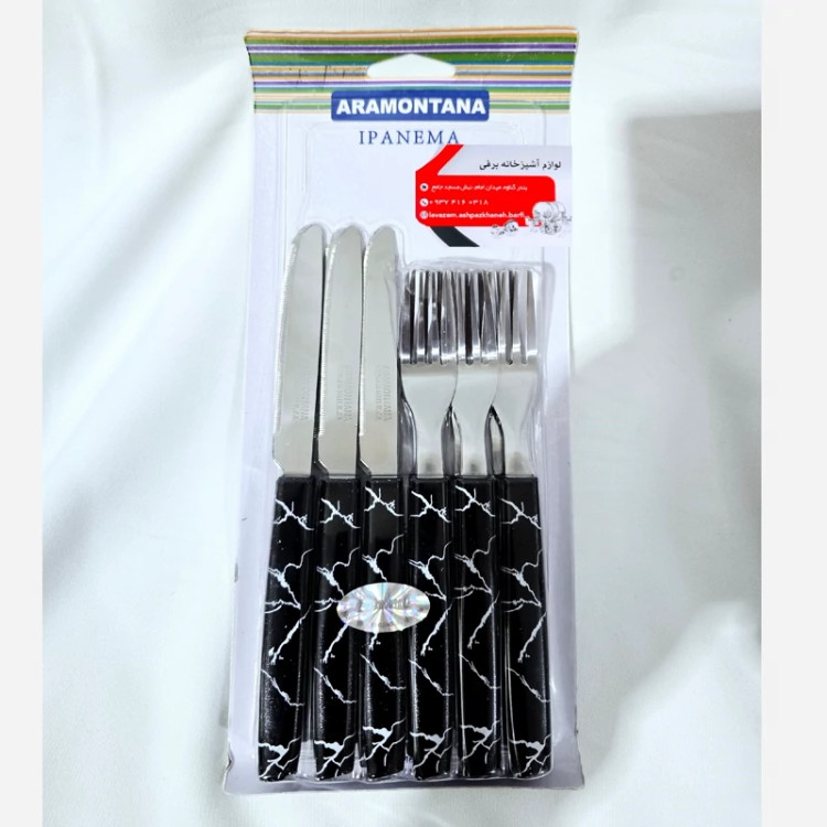 چاقو چنگال میوه خوری ارمانتینا برزیلی رنگ مشکی خط دار با کیفیت بسیار بالا ضد زنگ و ضد کثیف ماندن