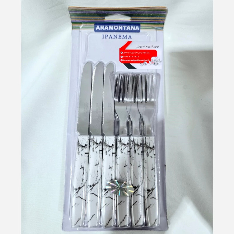 چاقو چنگال میوه خوری ارمانتینا برزیلی رنگ سفید مشکی با کیفیت بسیار بالا ضد زنگ و ضد کثیف ماندن