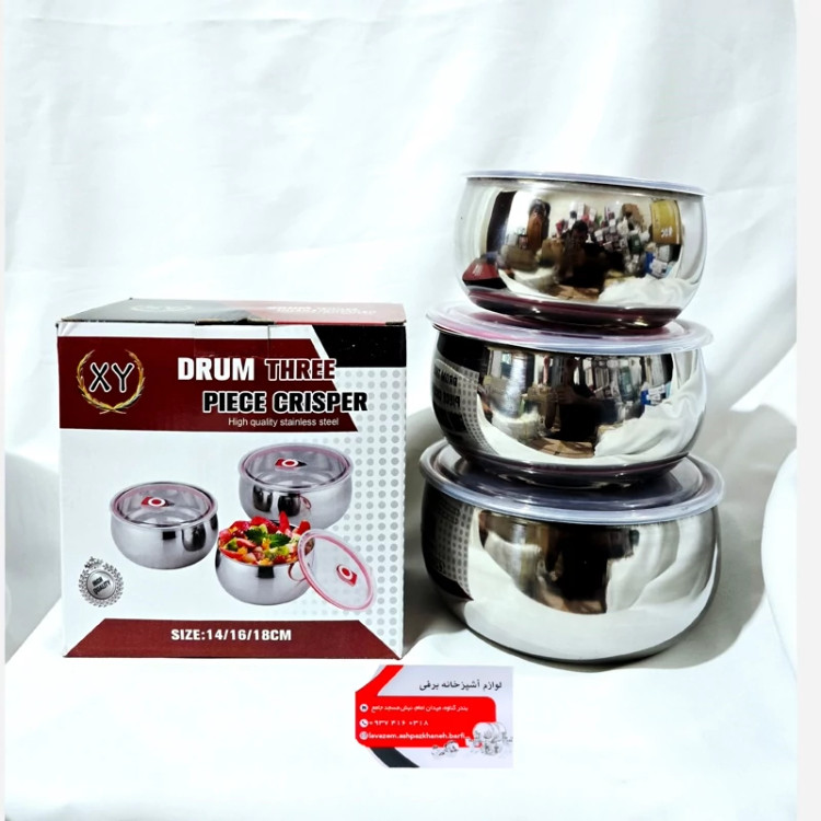ظرف غذای استیل سه تیکه سایز بزرگ درب پلاستیکی واشردار استیل خالص اهنربا نگیر ضدزنگ و سیاه شدن بدون ریختن مایعات