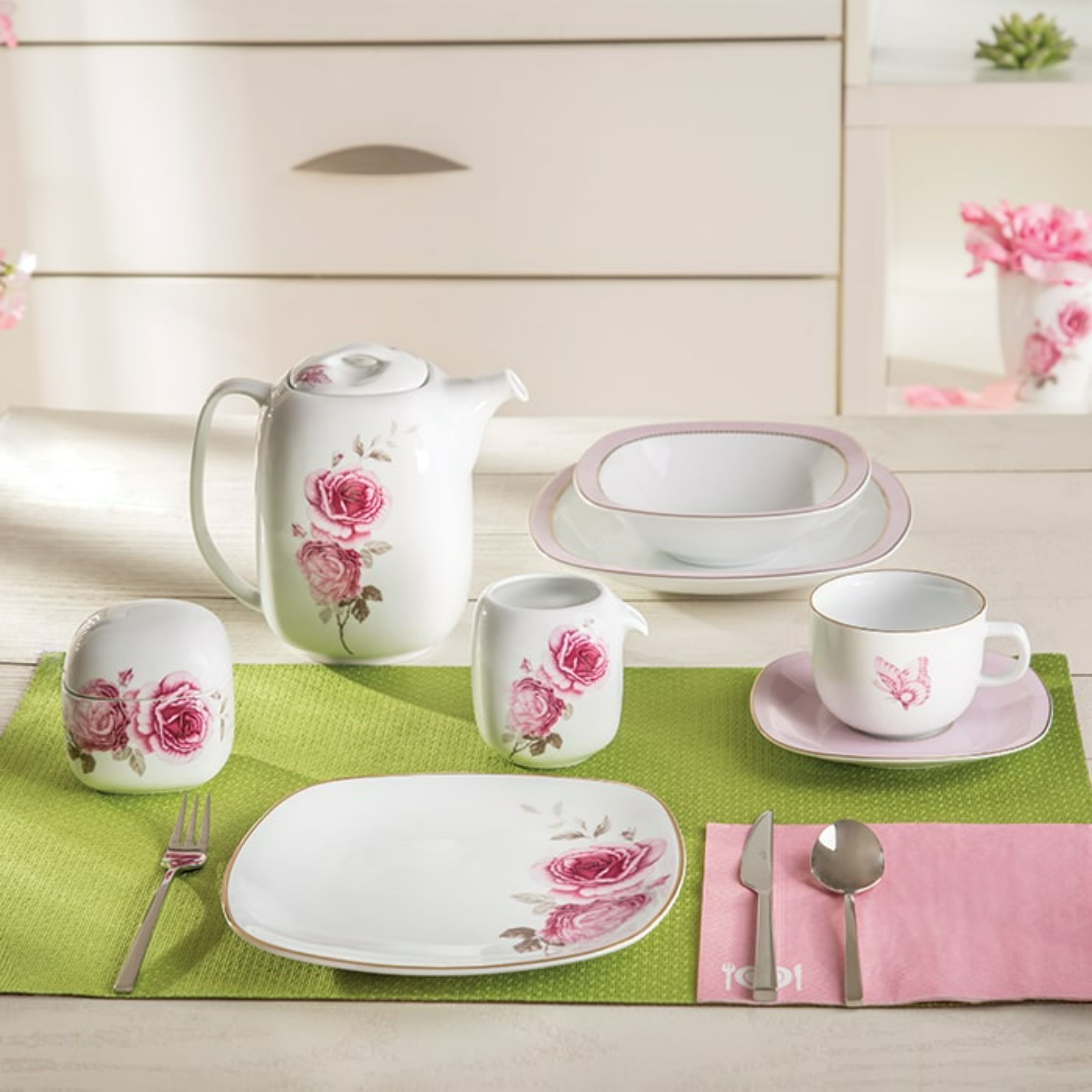 سرویس غذاخوری چینی زرین 6 نفره 27 پارچه رزفلاور درجه عالی