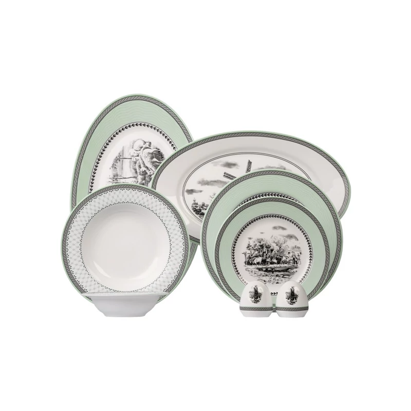سرویس غذاخوری چینی زرین 6 نفره 28 پارچه ویلیج سبز درجه عالی