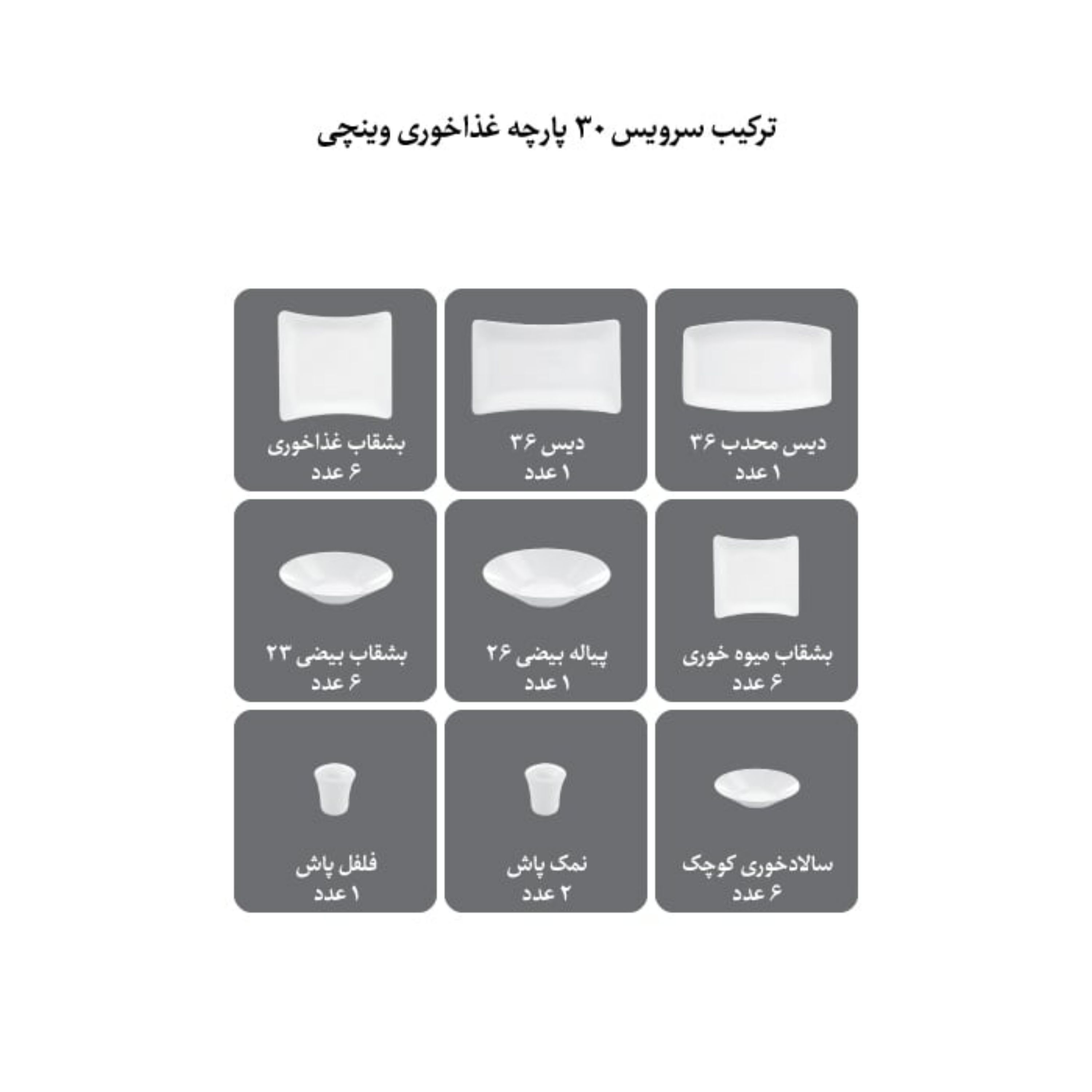 سرویس غذاخوری چینی زرین 6 نفره 30 پارچه سمن درجه عالی