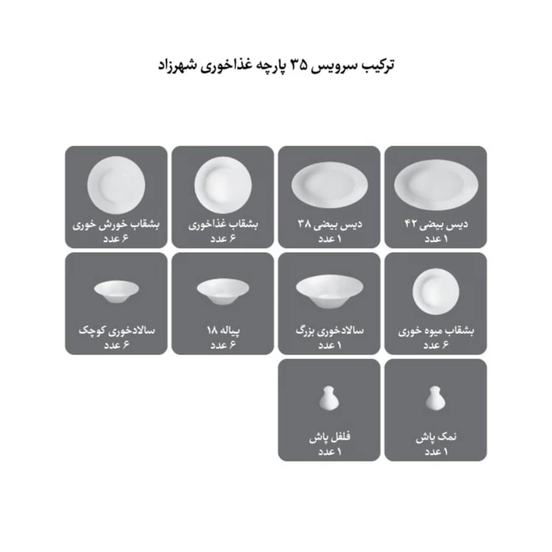 سرویس غذاخوری چینی زرین 6 نفره 35 پارچه آناهید درجه یک