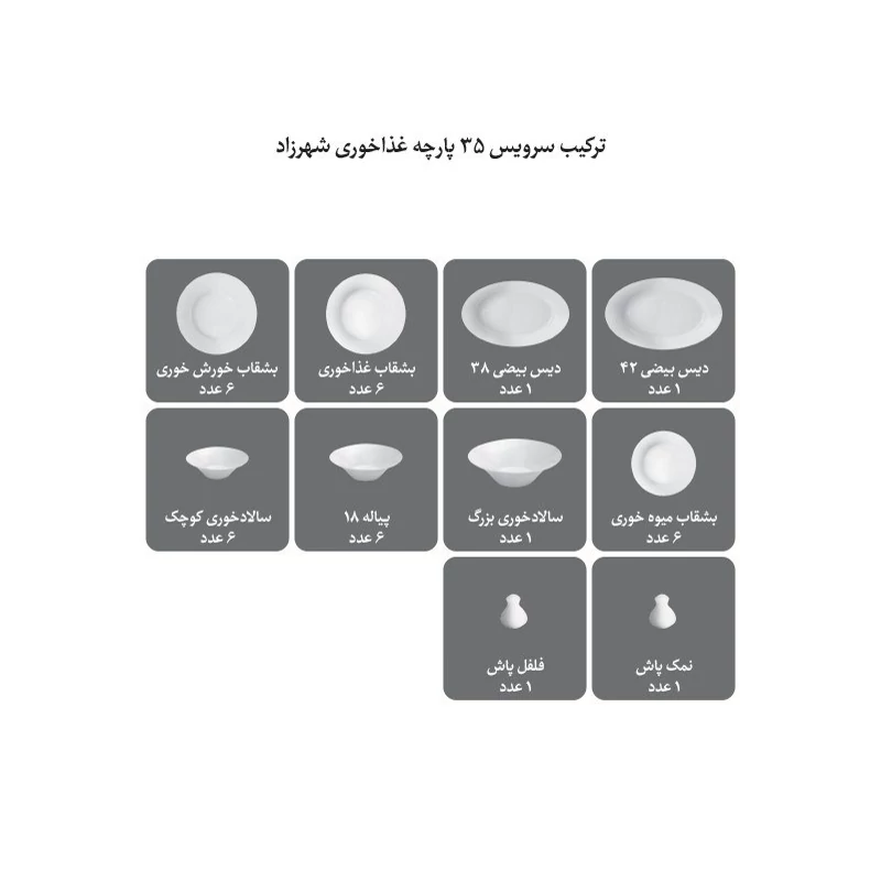 ترکیب سرویس 35 پارچه چینی زرین ایران: