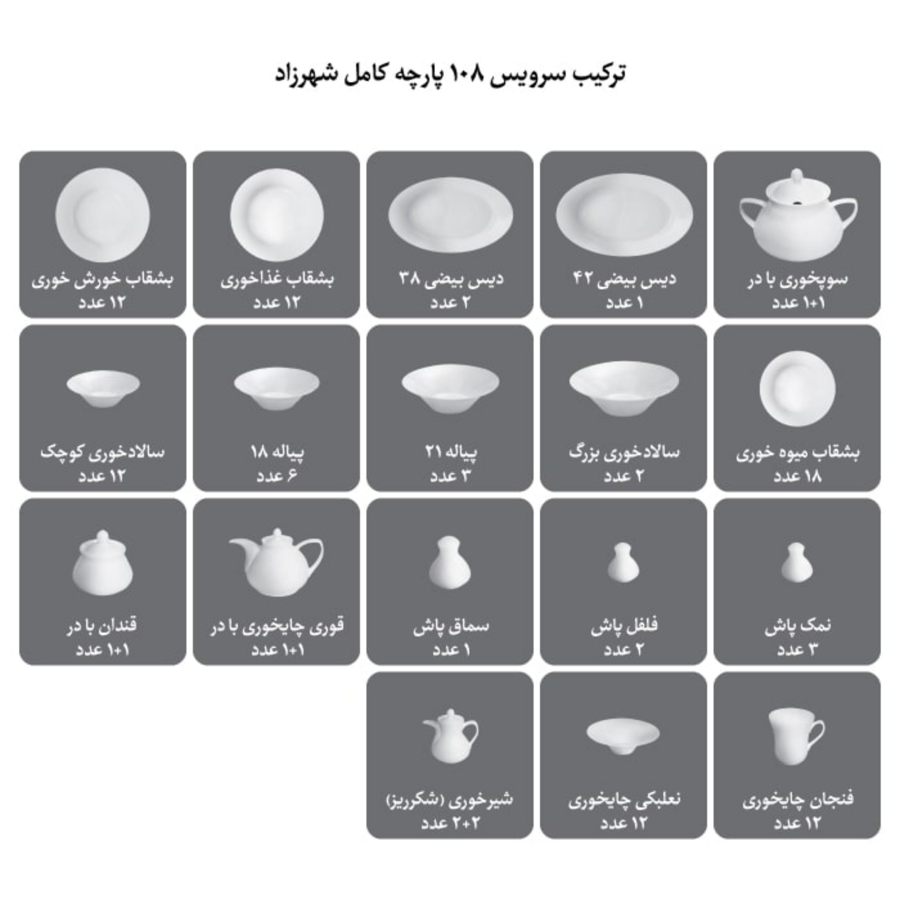 ترکیب سرویس 108 پارچه چینی زرین ایران: