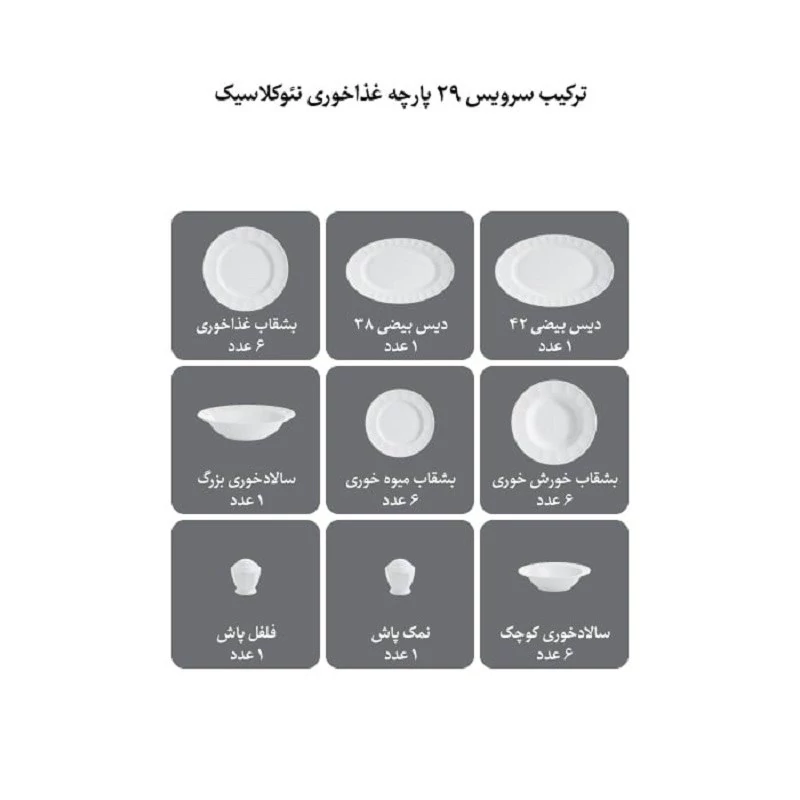 ترکیب سرویس 29 پارچه چینی زرین ایران: