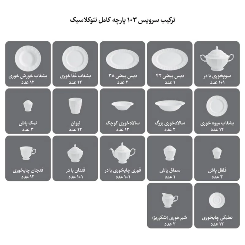 ترکیب سرویس 103 پارچه چینی زرین ایران: