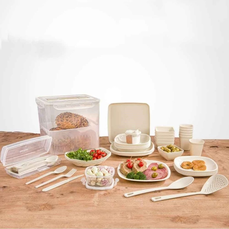 سرویس مسافرتی پلاستیکی 60 پارچه لیمون شامل تمام ظروف و وسایلی است که شما را از به همراه بردن لوازم اضافی برای سفر یا پیک نیک بی نیاز می سازد. ظروف این سرویس، از جنس پلاستیک مرغوب و سبک ساخته شده اند و به منظور سهولت در حمل و جا به جایی، در یک باکس پلاستیکی دسته دار جای گرفته اند. این سرویس مسافرتی که مناسب برای 6 نفر است، شامل موارد زیر می باشد: