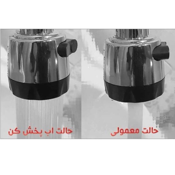 سر شیر آب دو حالته شیر اب آشپزخانه دارای دو حالت مختلف میباشد که میتوانید هم حالت معمولی را داشته باشید که اب در نقطه ای متمرکز میشود و هم حالت اب پخش کن همانند سردوش حمام را داشته باشید که میتوایند فشار شکن شیر آشپزخانه برای کارهای مختلف از آن استفاده نمایید قابلیت چرخش به همه اطراف یعنی 360 درجه دارد که داری خرطوم فنری است که باعث افزایش طول علم ظرفشویی خواهد شد مناسب روشویی هم میباشد که به همه شیرالات قدیمی و اهرمی نصب خواهد شد.