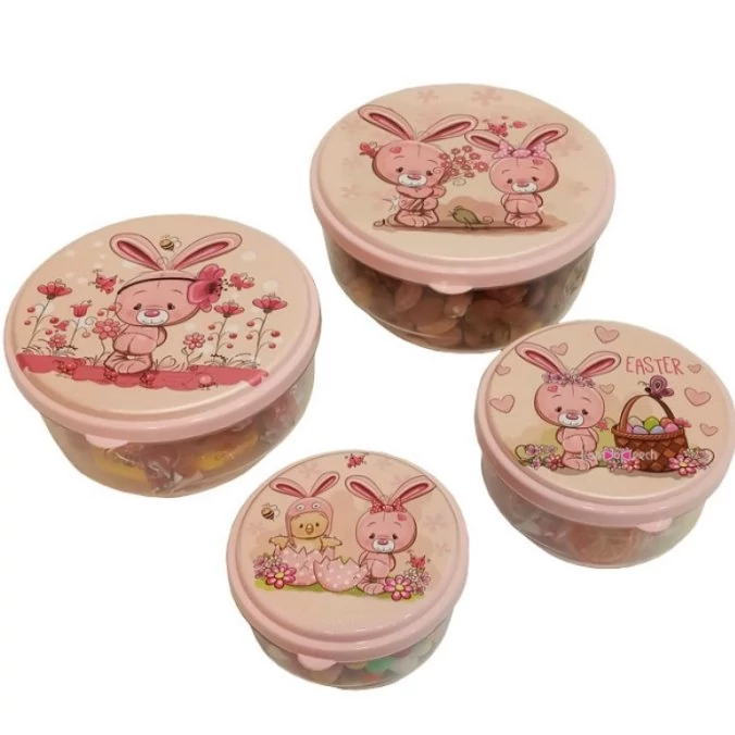 مجموعه 4 عددی ظرف نگهدارنده زیبا همراه طرح کارتونی روی درب و در چهار سایز مختلف و از این محصول برای نگهداری غذا میتوان استفاده کرد و قابل استفاده در فریزر، مایکروفر می باشد . همچنین قابلیت شستشو با ماشین ظرفشویی و دست را دارد.