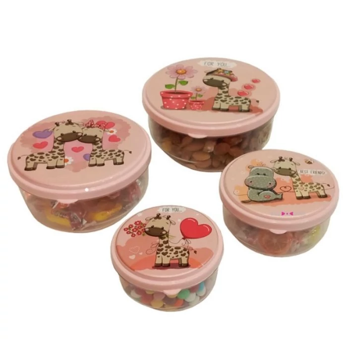 مجموعه 4 عددی ظرف نگهدارنده زیبا همراه طرح کارتونی روی درب و در چهار سایز مختلف و از این محصول برای نگهداری غذا میتوان استفاده کرد و قابل استفاده در فریزر، مایکروفر می باشد . همچنین قابلیت شستشو با ماشین ظرفشویی و دست را دارد.