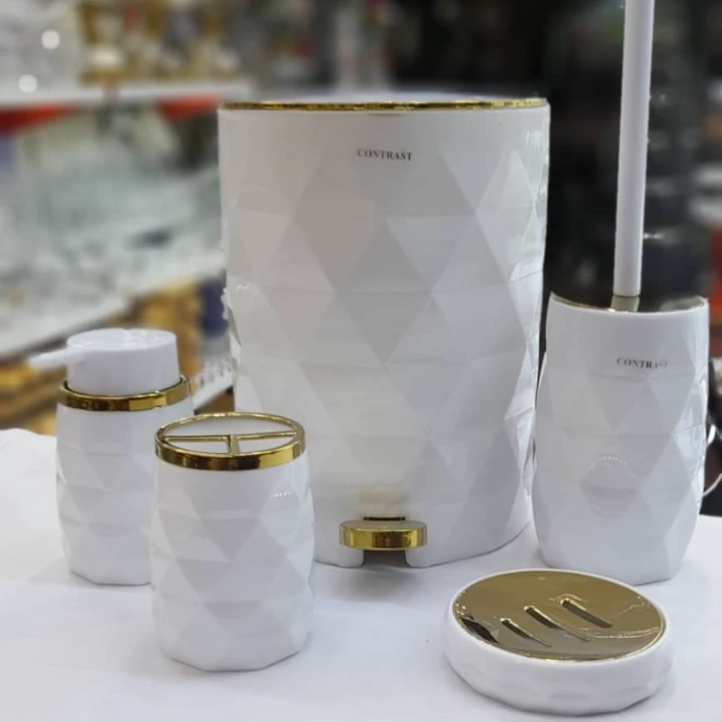 ♦️6 پارچه شامل: سطل و برس ، جا مسواک – جامایع – لیوان و جای صابون