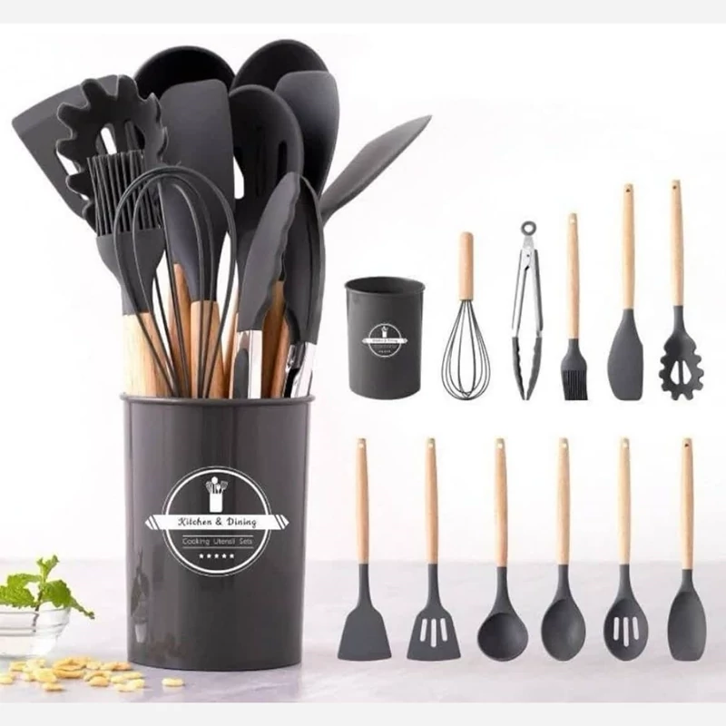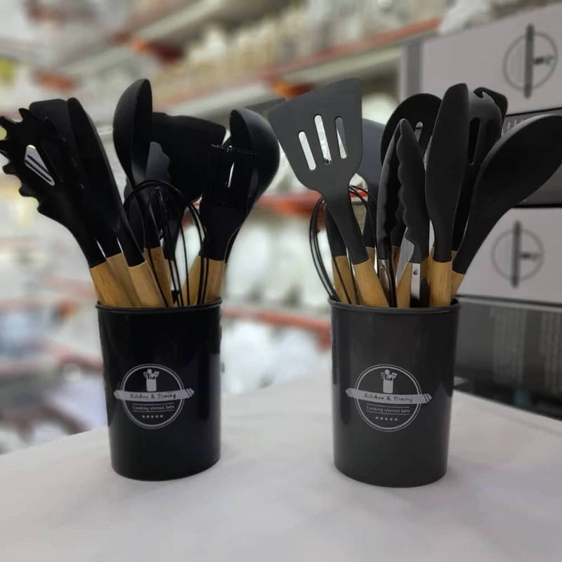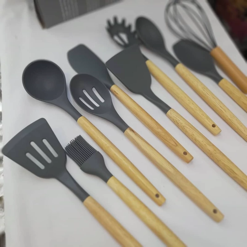 فروش ویژه سرویس کفگیر سیلیکونی دسته بامبو (12 پارچه)