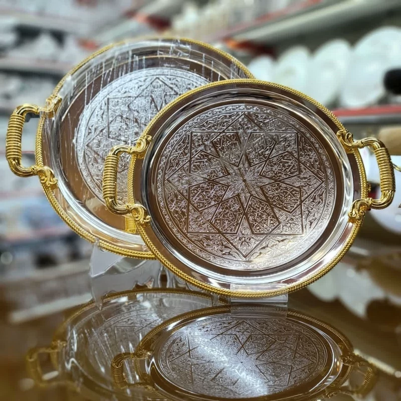 سینی استیل پذیرایی طلا نقره ای (کد 229)
