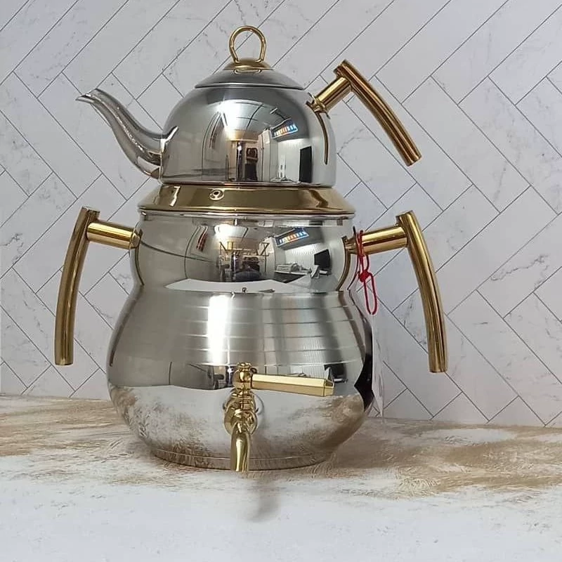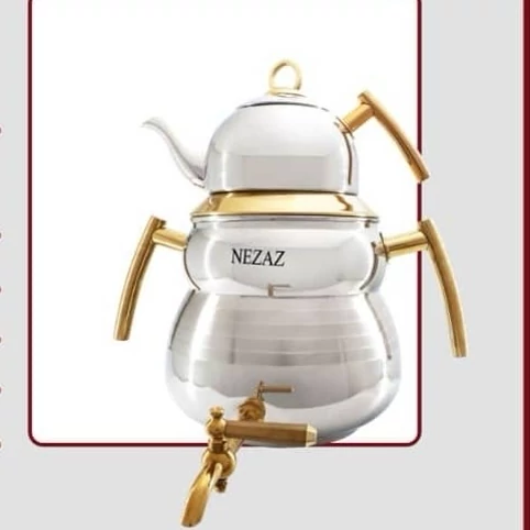کتری و قوری استیل نزاز دسته طلایی