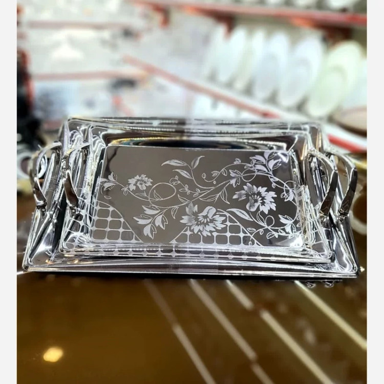 ✅طراحی برجسته روی دسته ها و حاشیه سینی