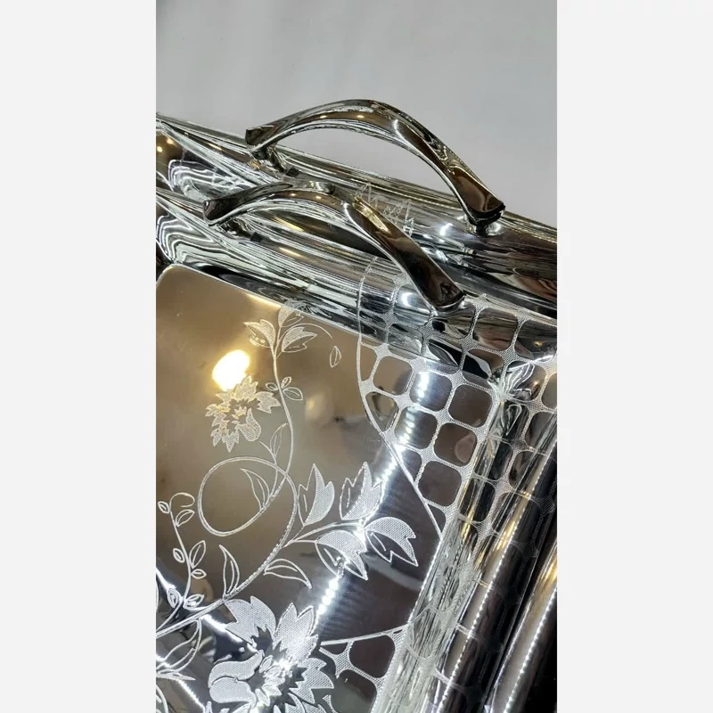 ✅طراحی برجسته روی دسته ها و حاشیه سینی