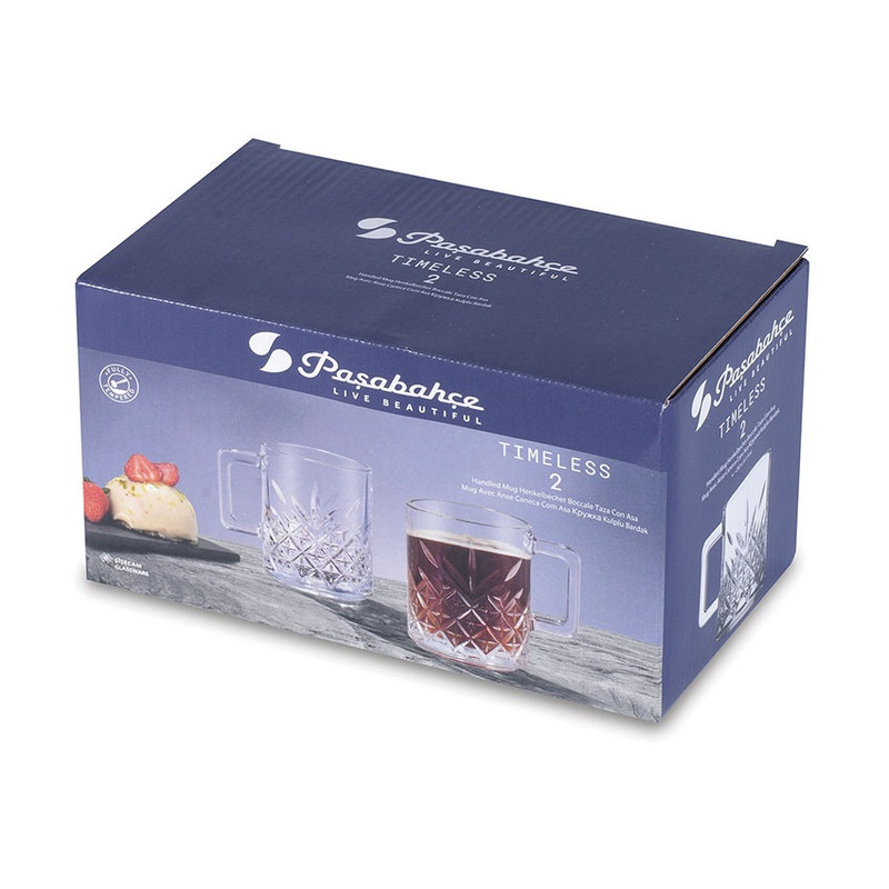 حجم: 250 سی سی، ارتفاع: 9 سانتی متر، قطر دهانه 6.5 سانتی متر. Paşabahçe 2-pack Timeless 55462 فنجان چای و فنجان نسکافه با محتویات دسته; 2 عدد لیوان بیزمان با دسته اندازه: ارتفاع: 9 سانتیمتر، قطر دهانه 6.5 سانتیمتر حجم مایع 250 سیسی